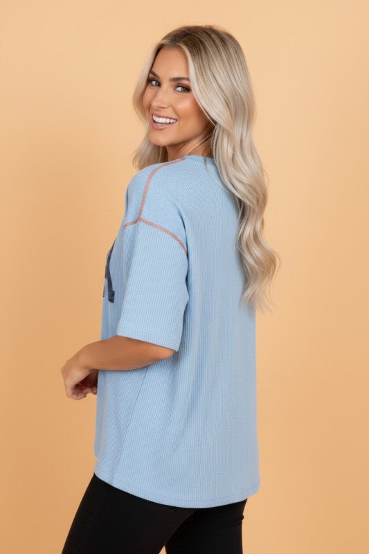 USA Corded Knit Short Sleeve Graphic Top