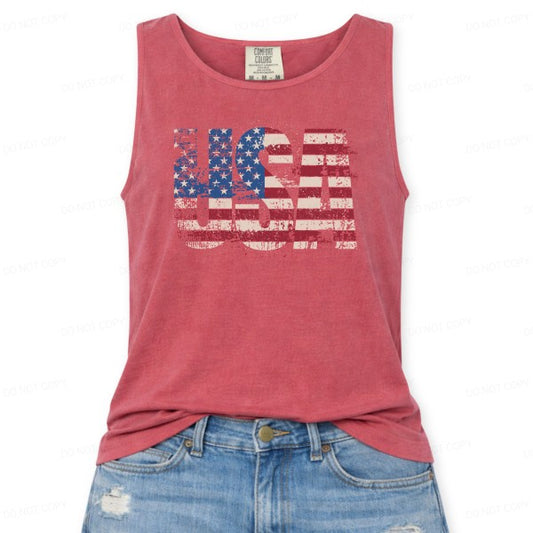 Distressed USA American Flag July 4th Tank Top