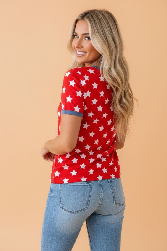 Americana Stars Colorblock Short Sleeve Top