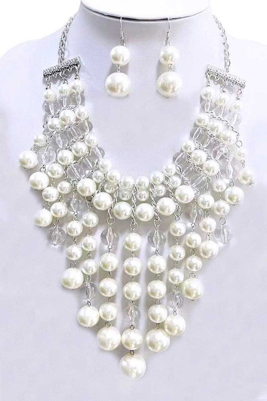 Mix Pearl Clear Beads Drop Statement Necklace Set