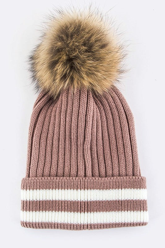 Raccoon Fur PomPom Pre-Sewed Slouchy Beanie