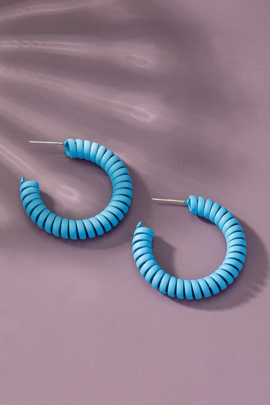 Spiral metal hoop earrings with color coating