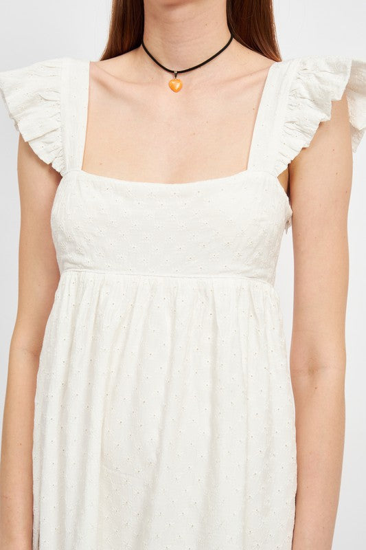 SQUARE NECK FLUTTED SLEEVE MINI DRESS