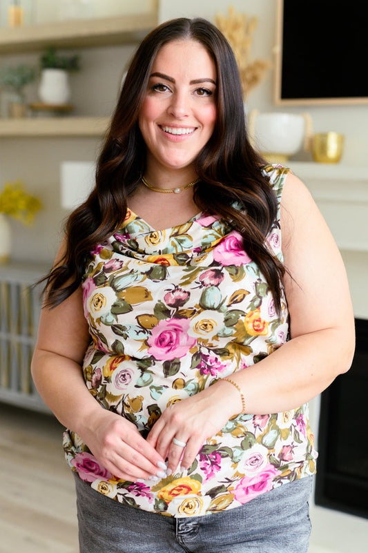 Camel Floral Star Patchwork 3/4 Long Sleeve Top