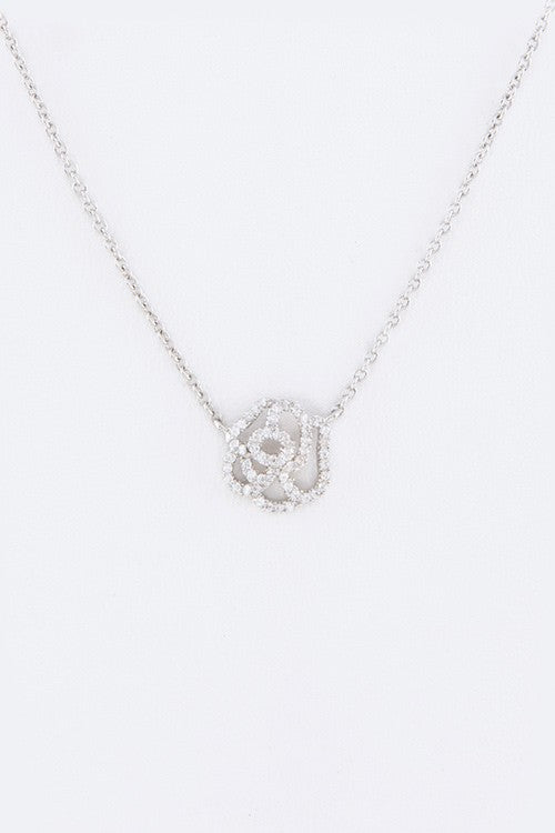 Cutout Rose CZ Pendant Necklace