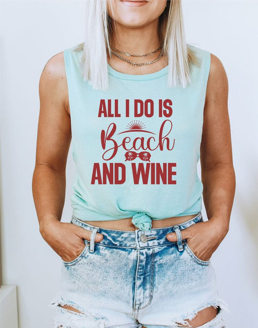 All I Do Is Beach & Wine Graphic Print Muscle Tank