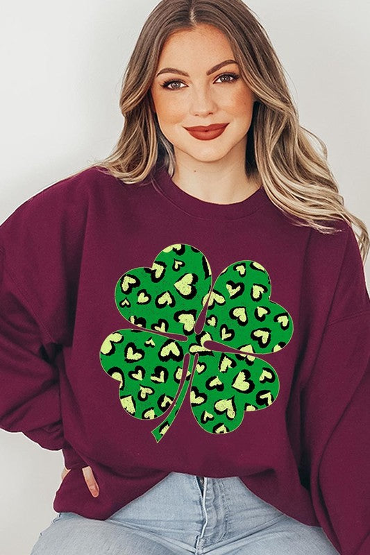 Four Leaf Clover Graphic Fleece Sweatshirts
