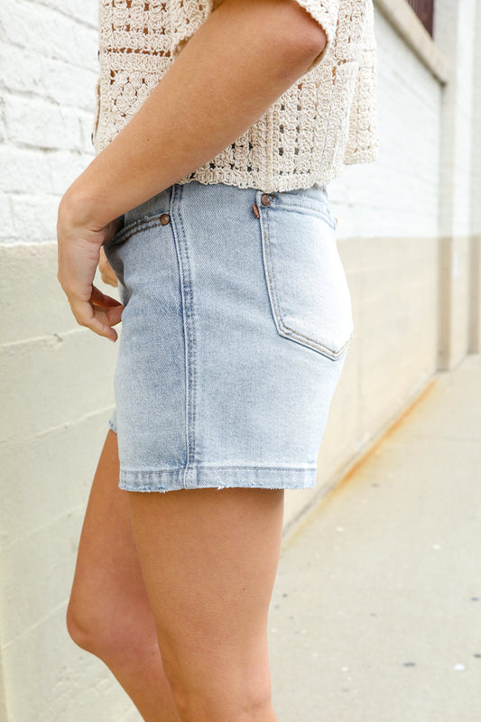 Judy Blue Light Wash Midrise Stitch Hem Denim Shorts