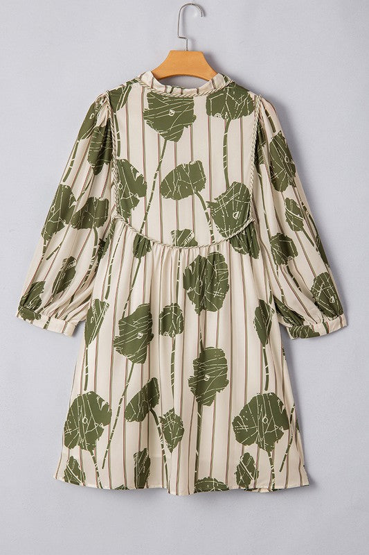 Floral Puff Sleeve Buttoned Collar Babydoll Dress