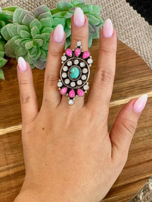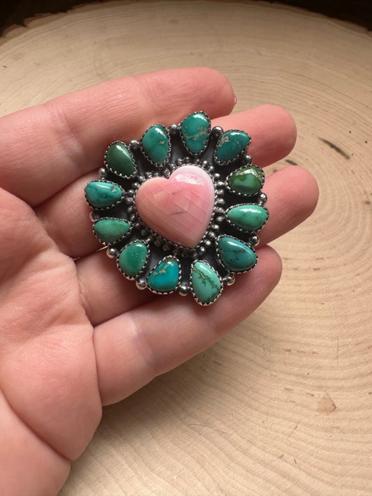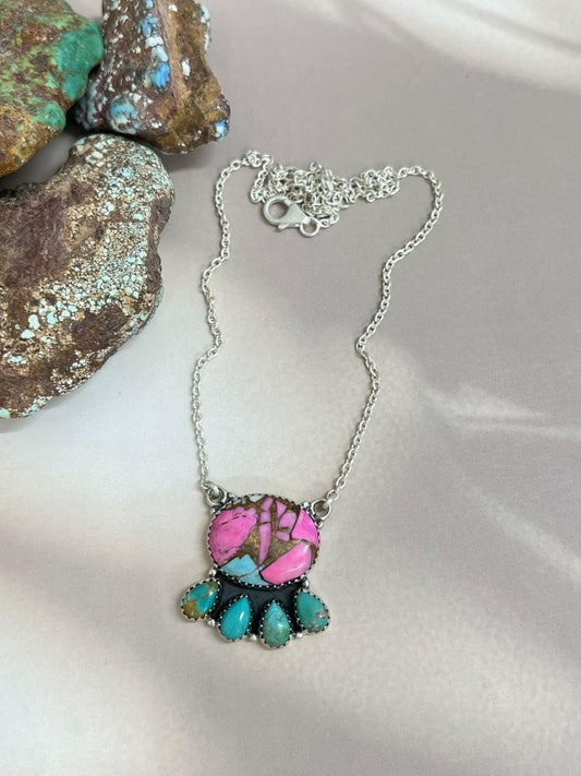Handmade Sonoran Turquoise, Pink Conch And Sterlin