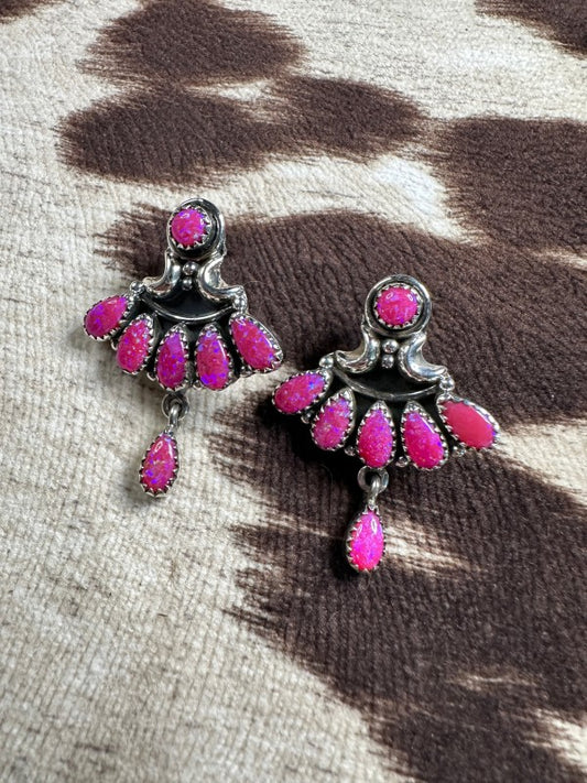 Handmade Hot Pink Fire Opal and Sterling Silver Po