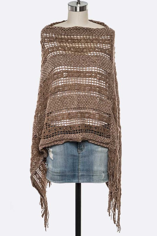 Loose Knit Fringe Poncho