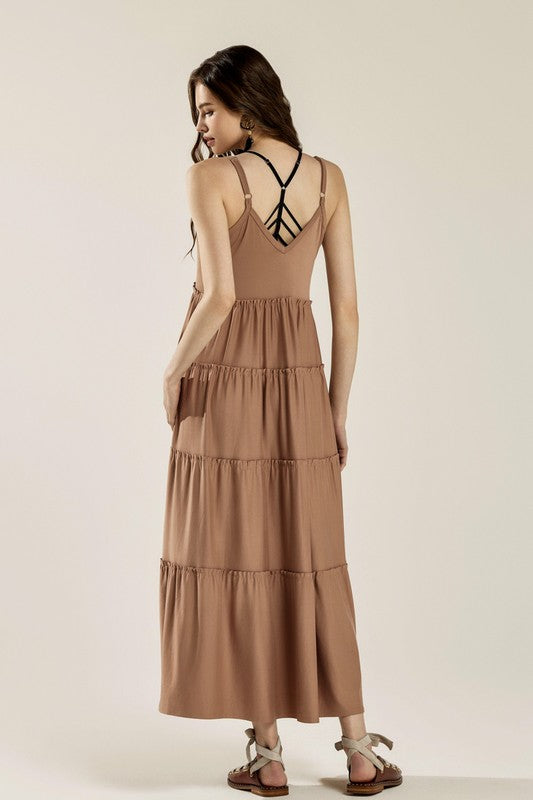 Plus Knit V-neck Ruffle Tiers Knit Maxi Dress