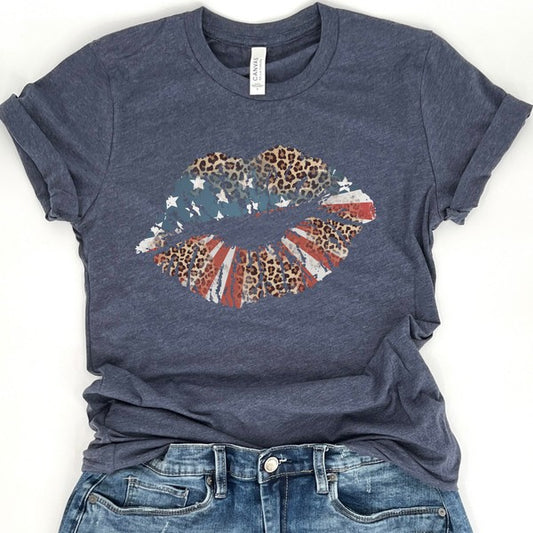 American Big Lips Stars, Stripes, Leopard t-shirt