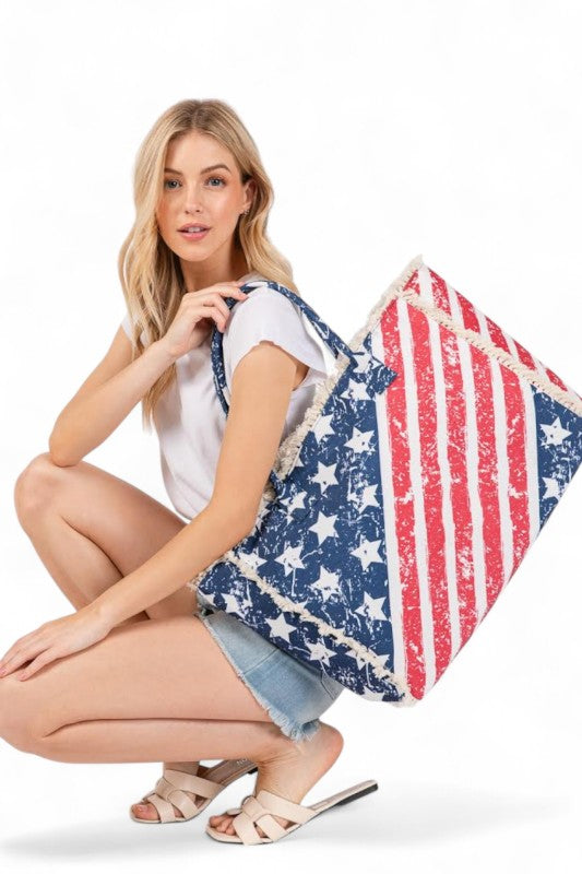 USA Flag Print Canvas Tote Bag