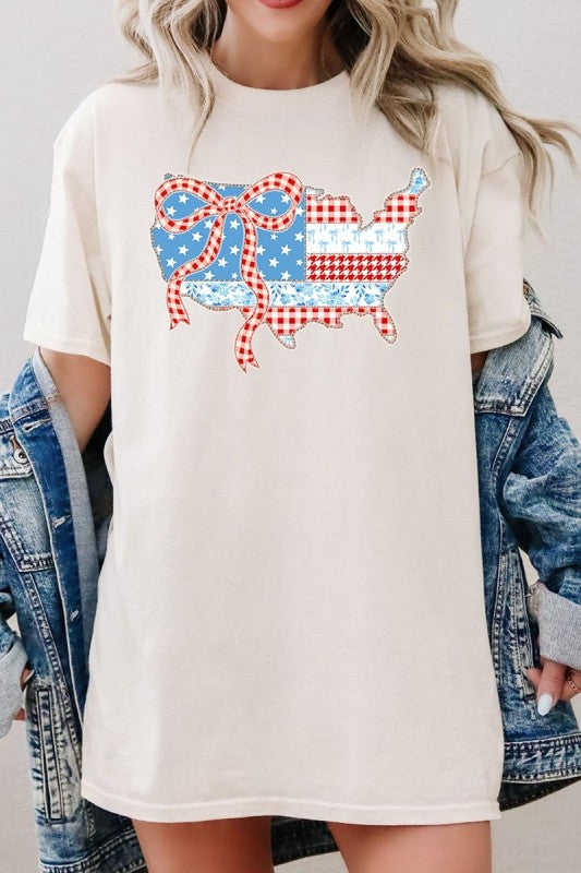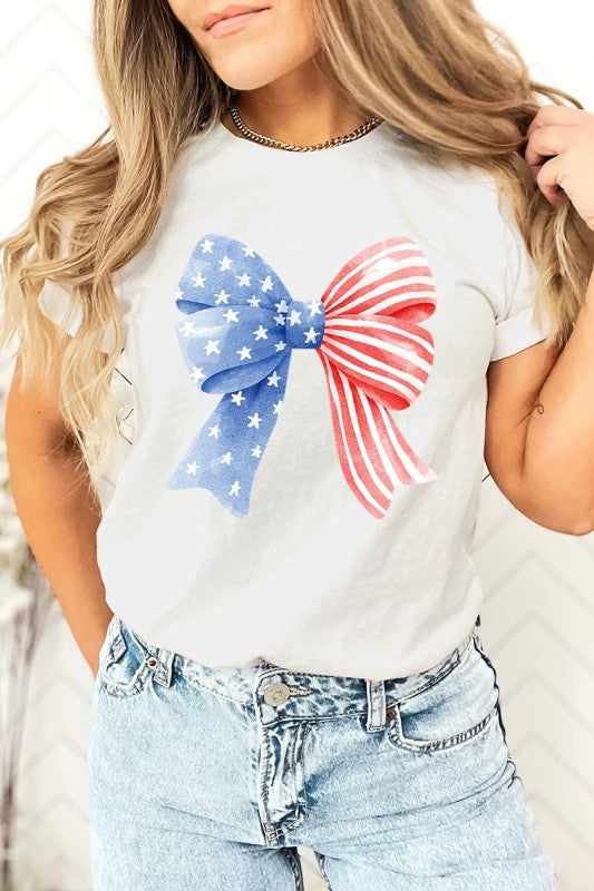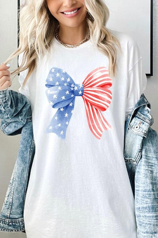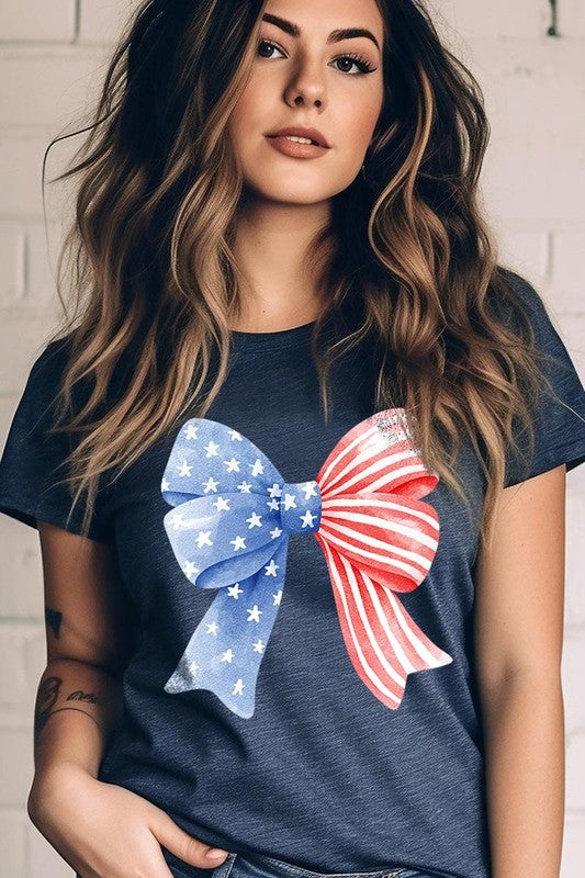 USA Patriotic Bow Graphic Heavy Cotton Tee