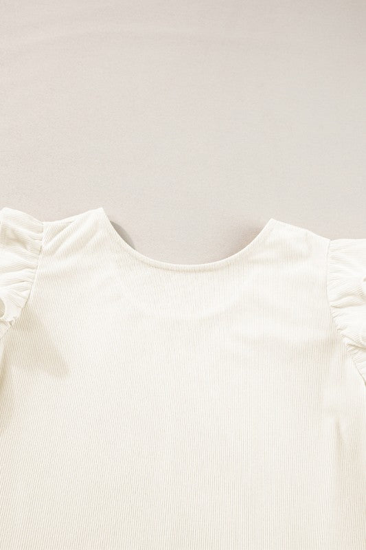 Beige Ruffled Flounce Sleeve Corduroy Shirts