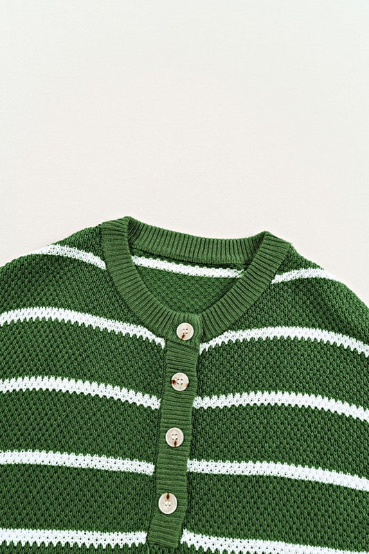 Stripe Drop Shoulder Oversized Henley Knit Tee