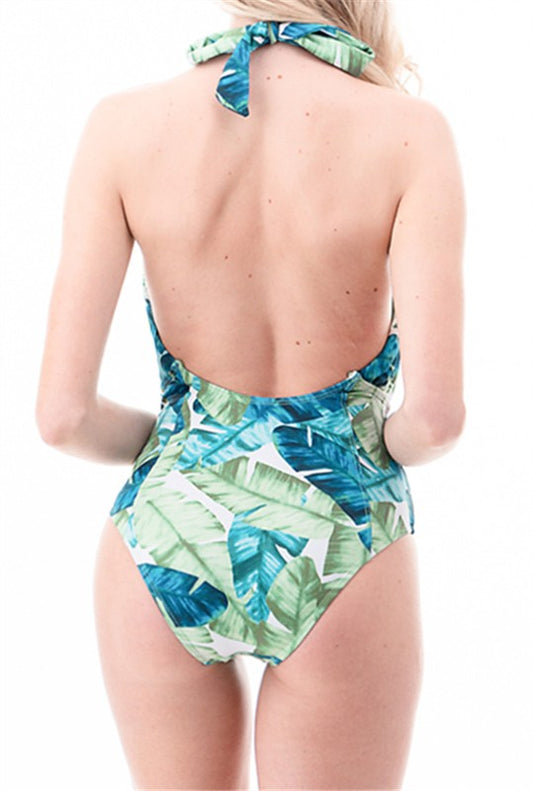 Full Size Cutout Printed Sleeveless One-Piece Swimwear