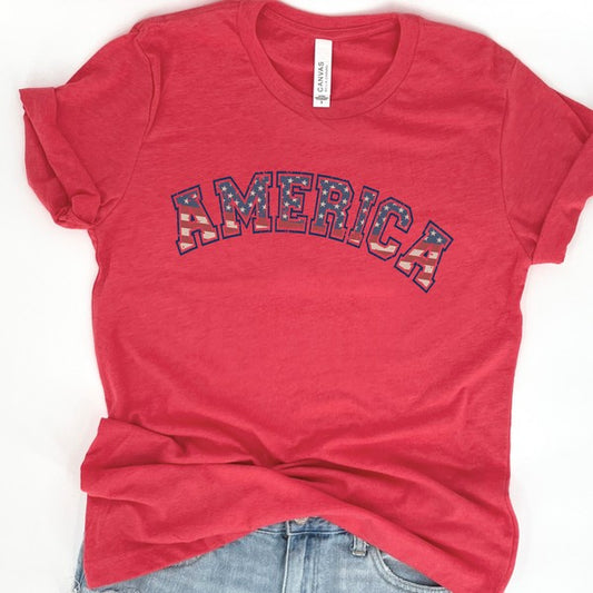 Floral American Flag Graphic Plus Heavy Cotton Tee