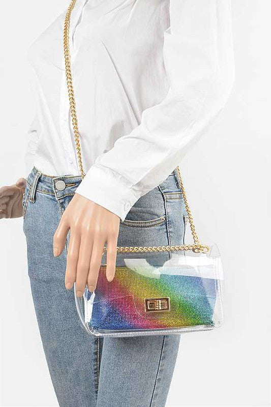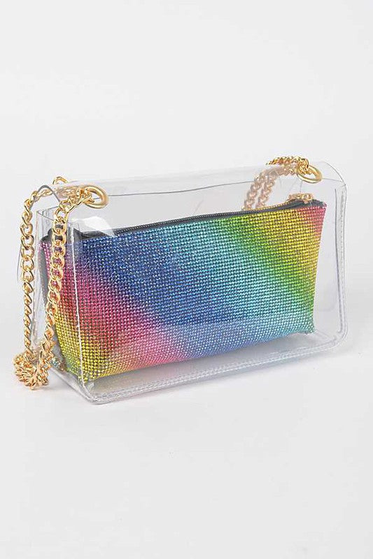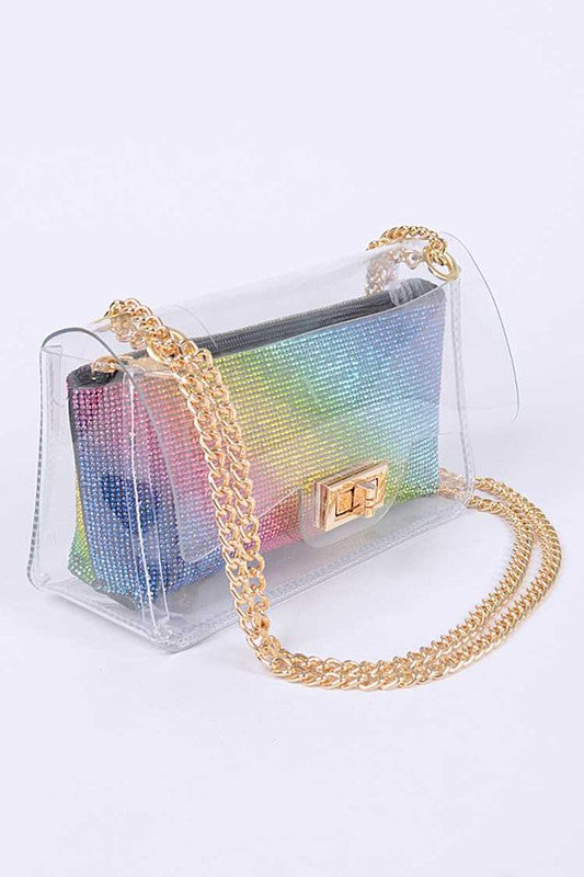 Step into style with the 2-in-1 Cleared Convertible Stadium Bag Set, perfect for stadium events, concerts, or any occasion that requires a clear bag. With its chic design, rhinestone accents, and functional features, this bag ensures you stay both trendy and compliant.