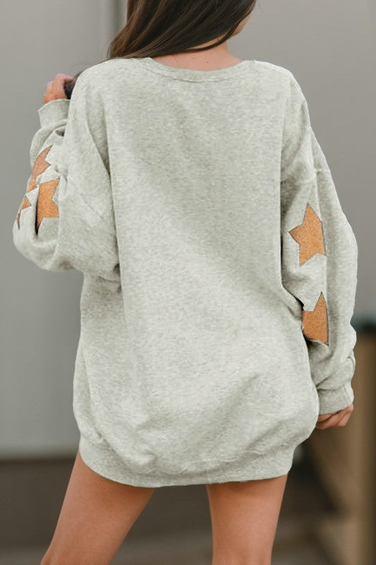 With a classic round neckline and relaxed shift silhouette, this sweatshirt is all about comfort and versatility. The long sleeves even have star accents for a little extra β¨popβ¨βbecause who says game day canβt be glam? π