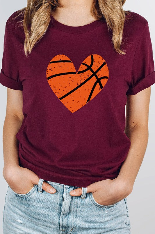 Distressed Basketball Hearts Sports Graphic Tee