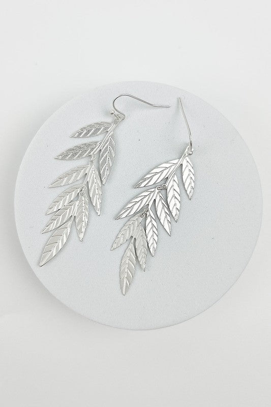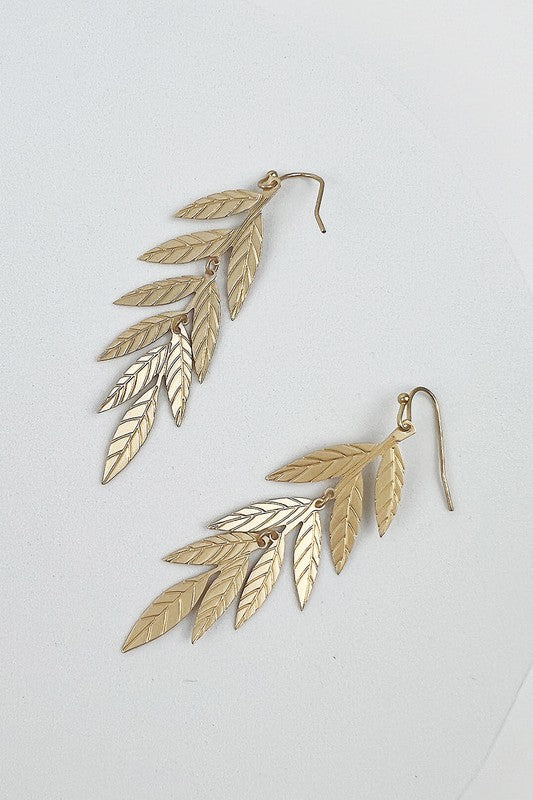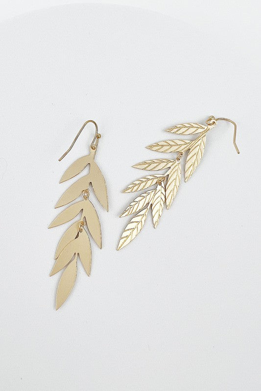 METAL LEAF DROP HOOK EARRINGS